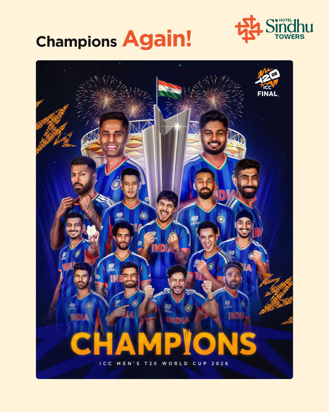 You saw powerful batting that changed the momentum in seconds.You saw bowlers delivering pressure balls when the match looked slipping away.You saw fielders flying like rockets saving impossible runs. That is championship mentality.